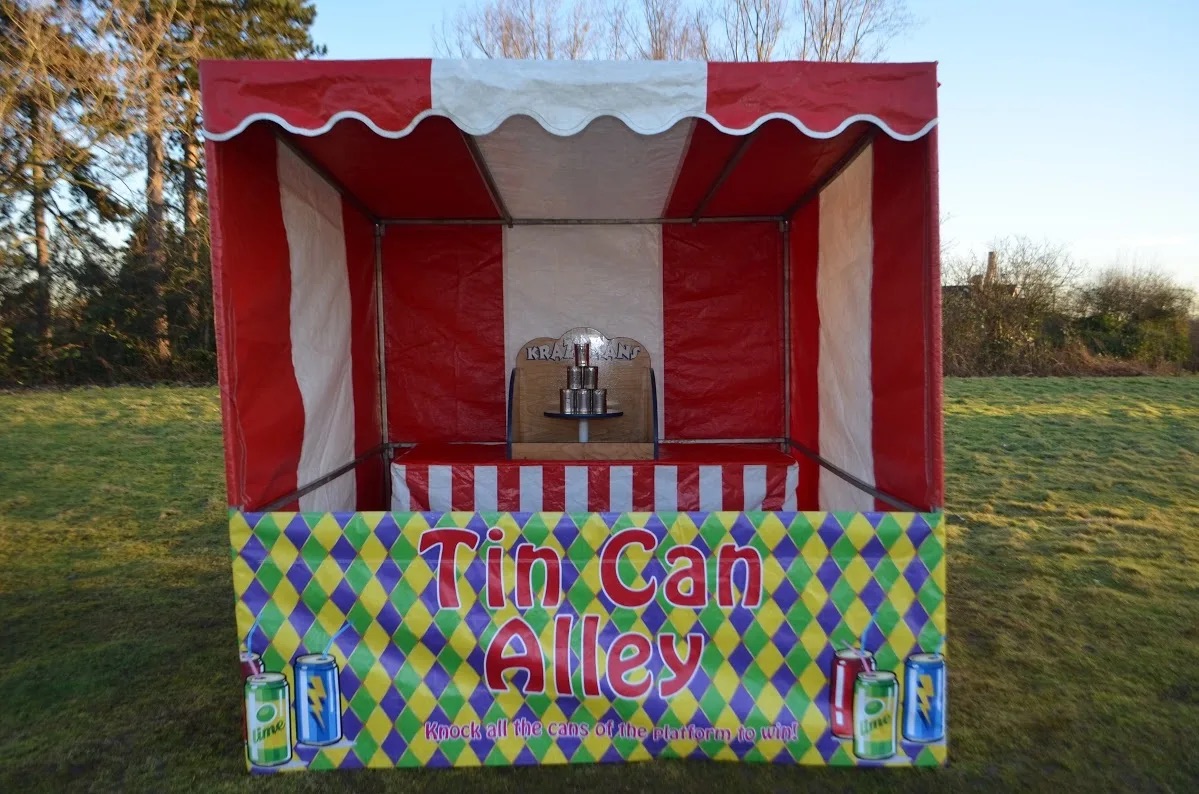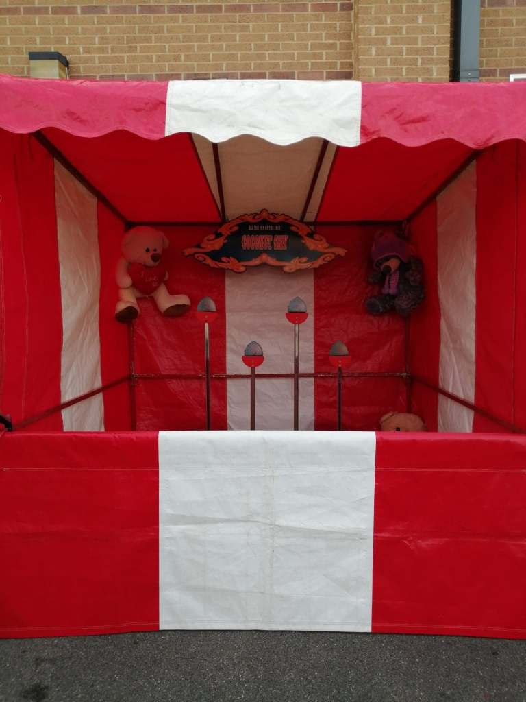 We have: Hoopla, Bottle Ring Toss, Ball in a Bucket, Coconut Shy, Tin Can Alley, Down a Clown and Hook a Duck, to name a few. Easy to set up at any event, whether indoor or outdoor. Stalls can also be used to house Candyfloss and Popcorn for added impact.
